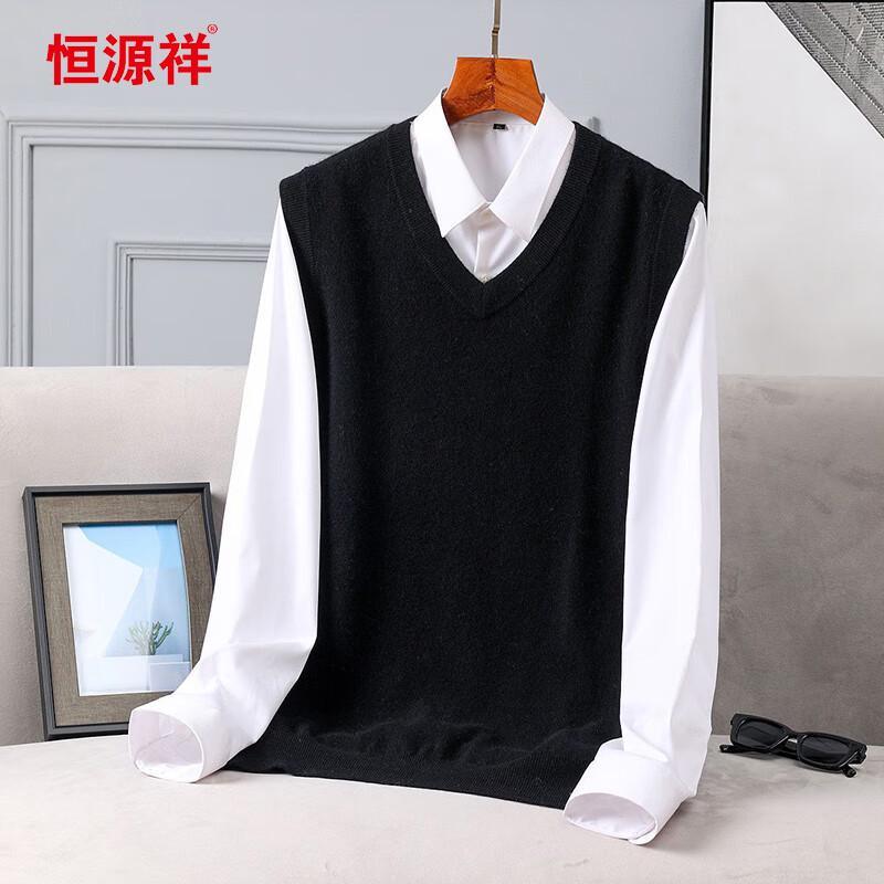 Hengyuanxiang Men's 100% Cashmere V-Neck Vest