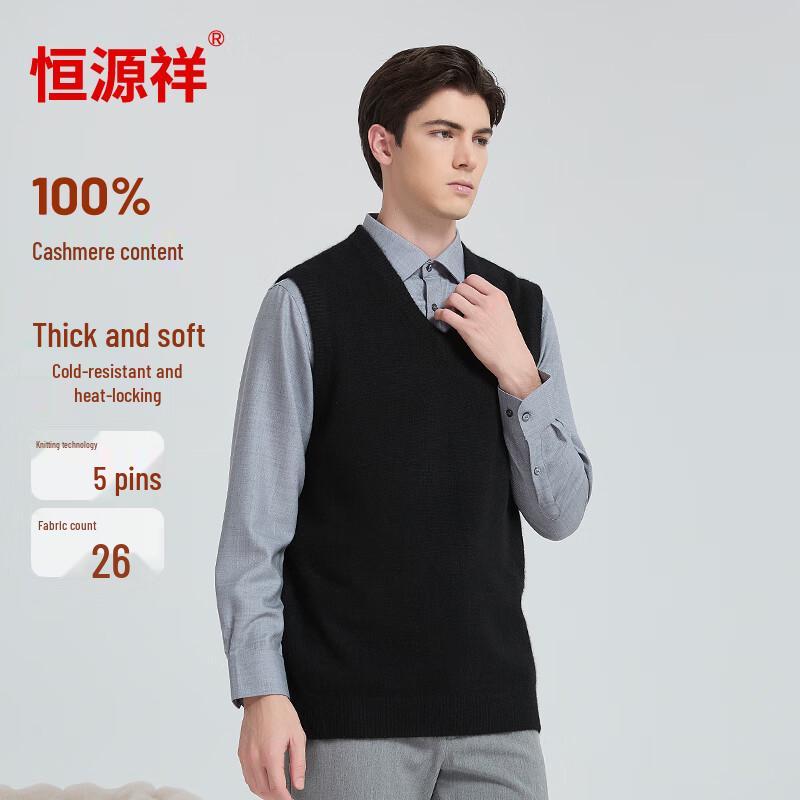 Hengyuanxiang Men's V-Neck Thickened Cashmere Vest