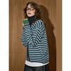 MO&Co. 2024 Spring Lambswool Cashmere Blend Distressed Striped V-Neck Sweater