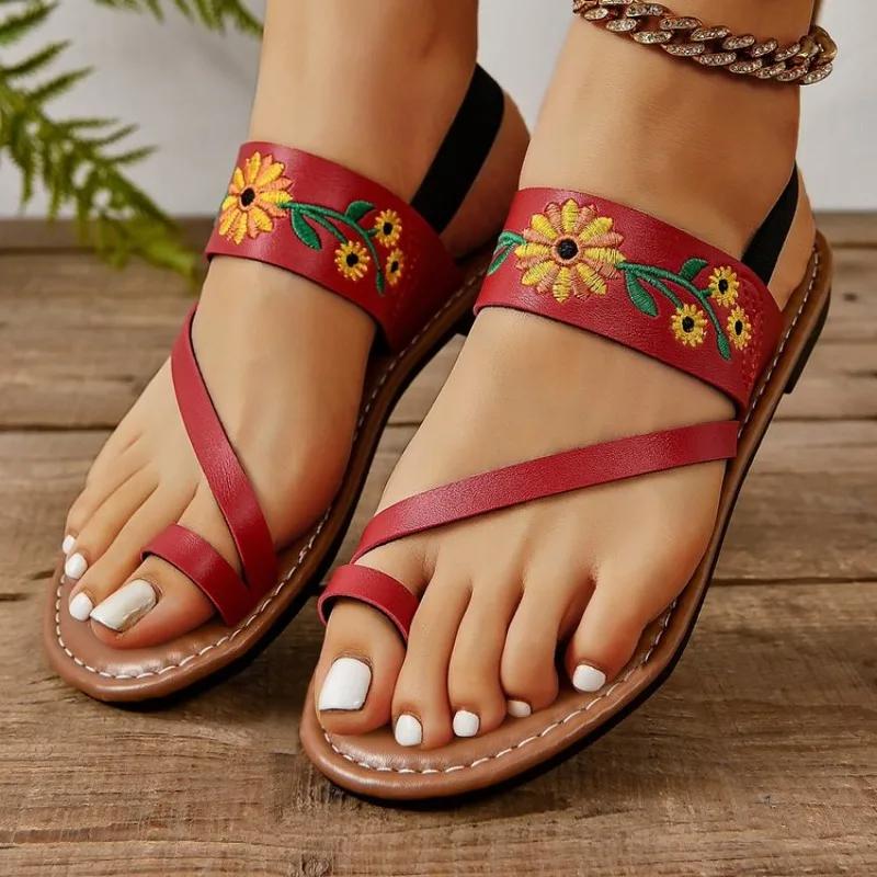2025 New Ladies Shoes Pinch Toe Women's Sandals Embroidered Summer Plus Size Beach Light Soft Bottom Flat Sandals
