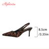 Aphixta Sexy Leopard Print Singlbacks Pumps Women Stiletto Heels Pumps Women Party Shoes 8.5cm Canvas Pointed Toe Dress Shoes