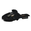 Winter New Baotou Slippers Women's Round Head Plush Deep Mouth Rivet Soft Sole Anti-slip Wear-resistant Flat Shoes
