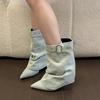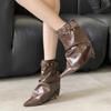 Cowhide version! Niche design sense pointed tip thin heel short boots women's 2025 new pleated pile boots high heel pant tube boots