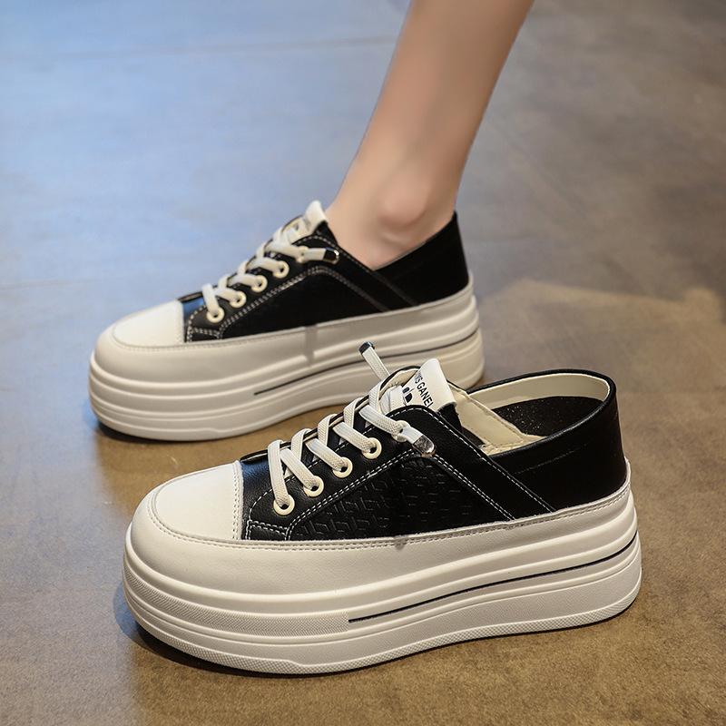 Faux leather one pedal two wear little white shoes women's shoes 2025 summer new thick-soled inner height increase versatile casual shoes