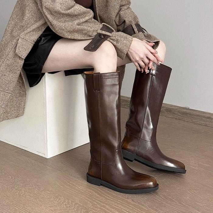 Sheepskin version~ 2025 new autumn and winter knee boots women's French retro leather thin tall knight boots