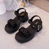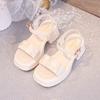 One-word buckle with platform sandals female 2025 summer new beautiful beach seaside fairy wind heightened beach Roman shoes