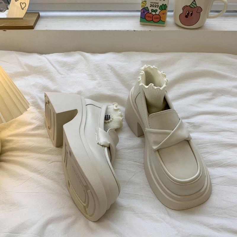 Fashion Women's Shoes French Style Thick Bottom Beige Leisure Mary Janes British Spring Summer Office Lady Loafers Slip on Shoes 35 40