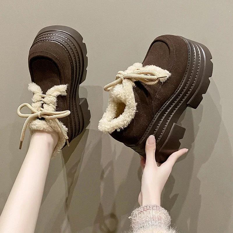 Fashion 10CM New Winter Women Warm Cotton Snow Shoes 2025 Fashion High Platform Sneakers Thick Heels Suede Leather Ladies Plush Pumps