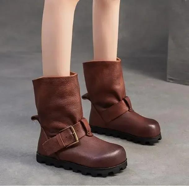 Fashion Top quality Spring Boots Slip on Chimney Ladies Women Shoes Cow Genuine Leather Ankle Booties Autumn Fashion Round Toe Moccasins
