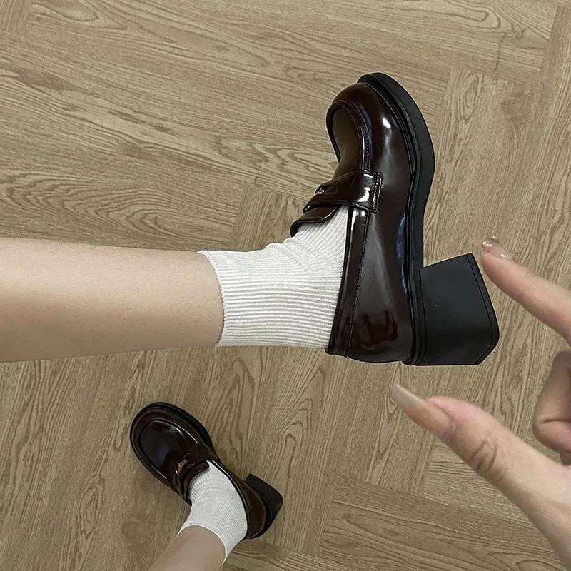Fashion 2025 Spring Autumn Women's Loafers Retro Fashion Brown Height Increasing Anti Slip Pumps British Banquet Matching High Heels