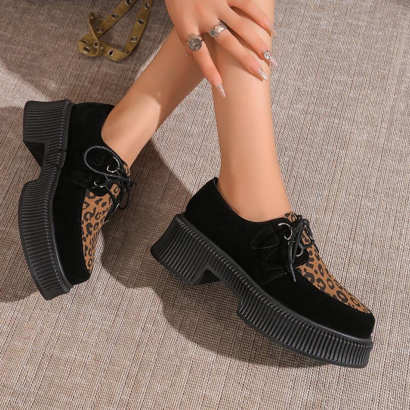 Fashion Leopard Print Sneakers Woman Spring Faux Suede Platform Shoes Thick Sole Lace-up Dress Oxford Retro Loafers Zapatos De Mujer
