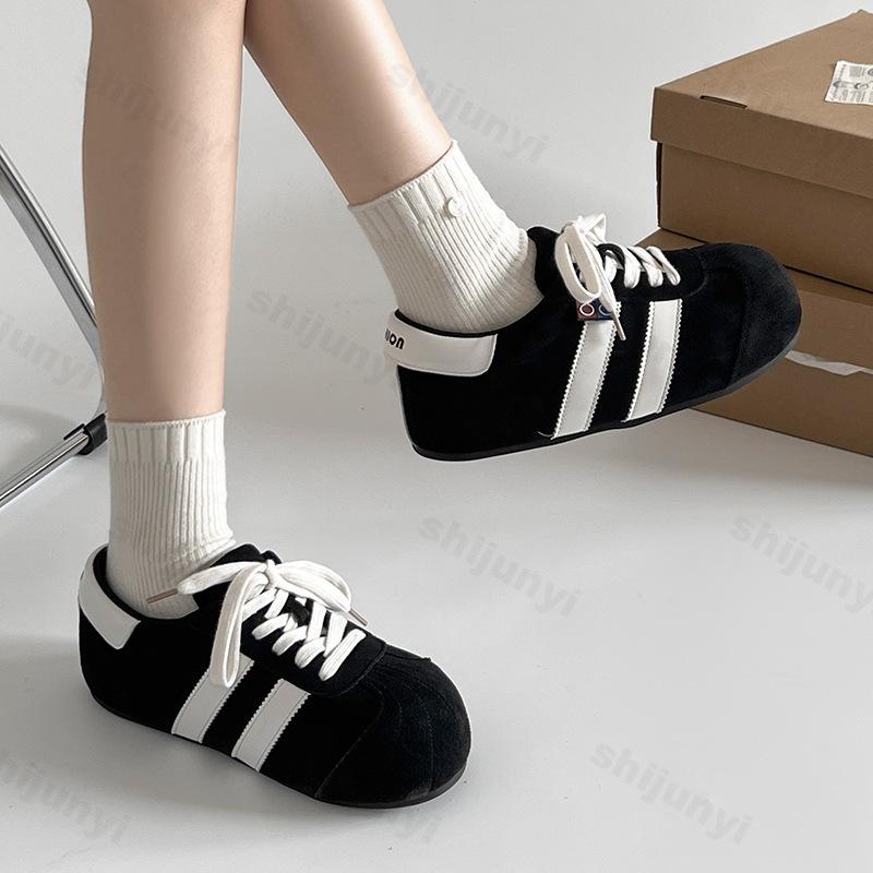Fashion Women's Single Shoes Spring New Frosted Matching Color Laceup Sports Shoes Casual Comfortable Non-slip Wear-resistant Flat Shoes