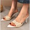 Fashion New Summer Women's High Heel Sandals Lace Embroidery Pointed Open Toe Stiletto High Heel Sandals Party Slippers Plus Size 42