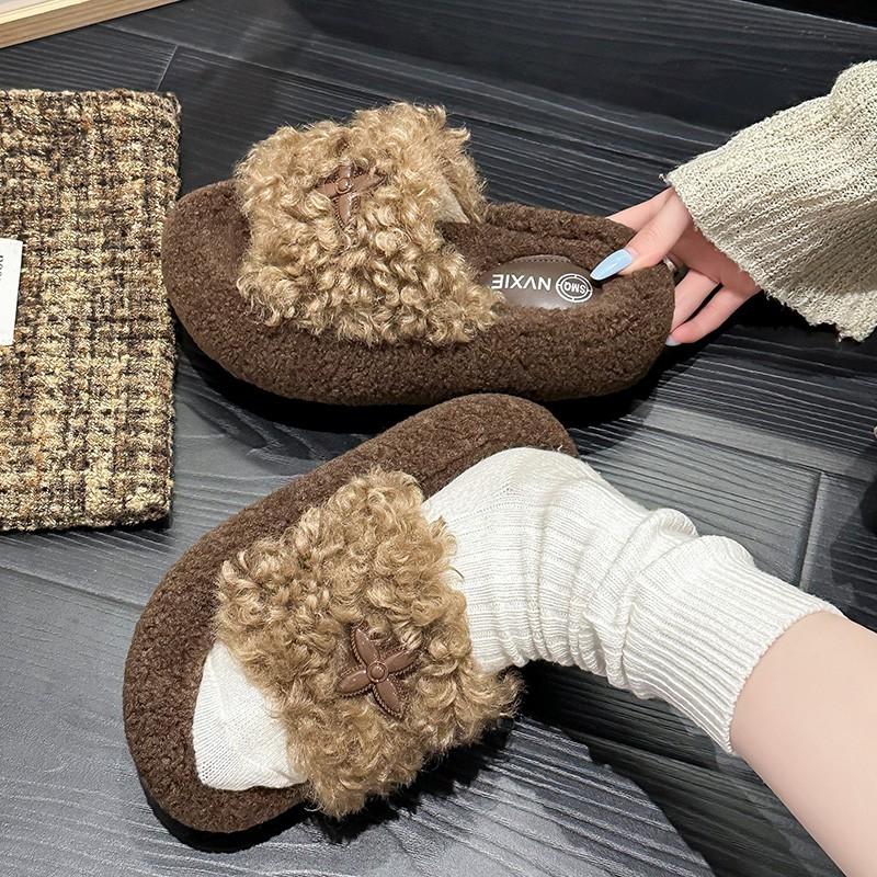Módní Thi Bot Bavlněné Pantofle Dámské Domácí Módní Univerzální Podzim Zima Venkovní Nošení Kožešinové Pantofle Podpatek Dámské Pantofle