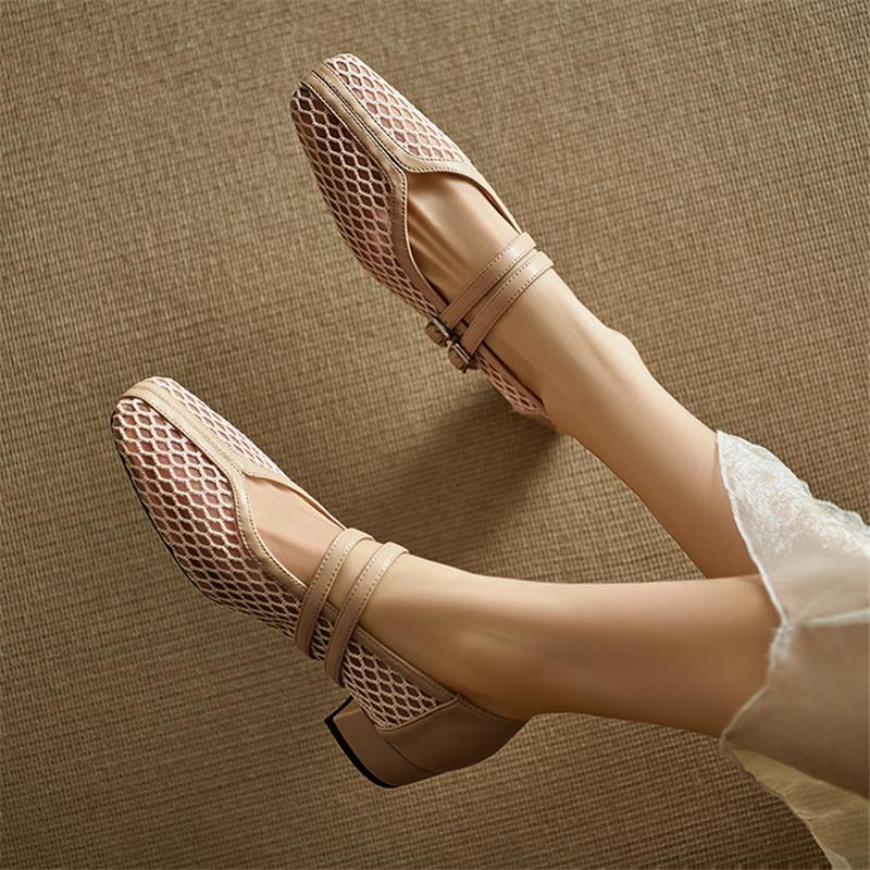 Móda Nové Letní Dámské Boty Čtvercová Špička Dámské Lodičky Boty pro Ženy Móda Prodyšná Síťovina Vykrojené Mary Jane Boty Střední Podpatek Boty
