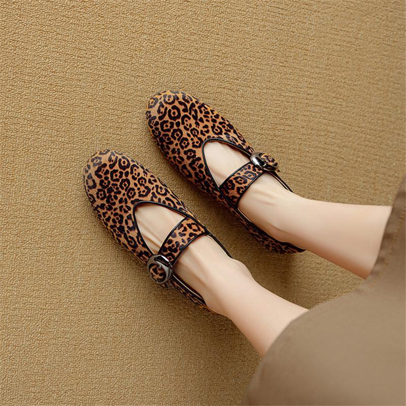 Fashion New Spring/summer Sheep Suede Round Toe Mary Jane Shoes for Women Fashion Leopard Print Horsehair Shoes Low Heels Women Pumps