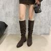 Módní dámské kozačky nad koleno Podzim Zima Dámské boty Módní dámské Nazouvací Sklady Nízký podpatek Kulatá špička Ploché Dlouhé kozačky Botas De Mujer