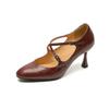 Fashion 2025 New Spring Square Heeled Women Pumps Buckle Strap Genuine Leather Office Lady Shoes Woman Retro Round Toe Black Mary Janes