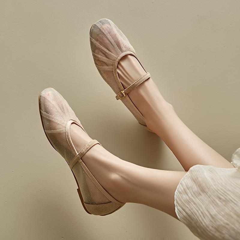 Fashion New Summer Women Pumps Shoes for Women Fashion Mesh Sandals Round Toe Mary Jane Shoes Women Breathable Flat Shoes Low Heels