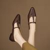 Fashion New Spring/summer Mary Jane Shoes for Women Split Leather Round Toe Thick Heel Shoes Casual Brogues Black Chunky Heel Shoes