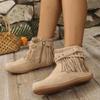 Fashion Vintage Tassels Western Boots for Women Rivet Decor Flat Heels Ankle Boots Woman Size Zipper Non Slip Short Booties
