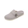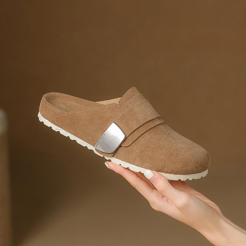Fashion Round Toe Retro Genuine Leather Kid Suede Covered Toe Slippers Women Med Wedges Heels Leisure Soft Leather Mules Female 2025 New