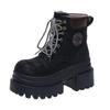 Fashion 9CM Women New Autumn Winter Leather Ankle Boots Chunky Heels Motorcycle Boots Woman Thick Bottom High Platform Short Booties