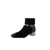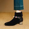 Móda Nové Podzim/zima Ovčí semiš Dámská bota Boty se čtvercovou špičkou pro ženy Módní kozačky S přezkou Střední podpatky Krátké kozačky Zip Černé kozačky