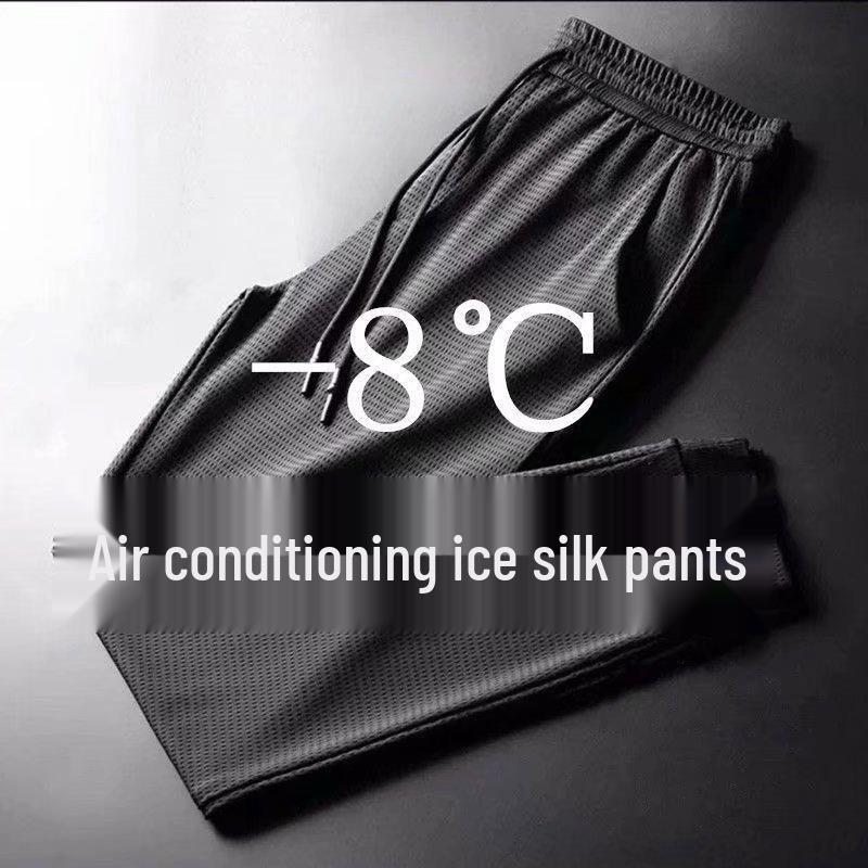 Men's Quick-Dry Nine-Point Mesh Pants, S-8XL, Ice Silk, Loose Fit, Summer Thin Sport Casual Style