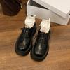 British style platform thick heel single shoes women's retro imitation leather fashion versatile lace-up round head jk small leather shoes