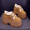 10CM Suede Cow Genuine Leather Platform Wedge Winter Plush Autumn Boots Spring Women Ankle Booties Shoes Chimney