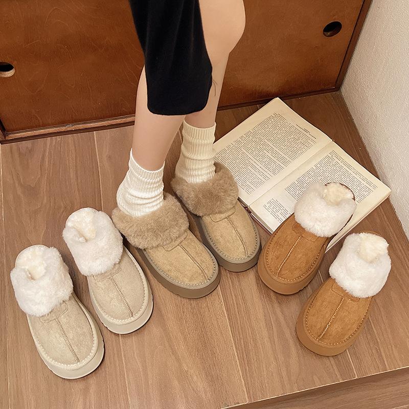 Thick bottom heightening fur integrated warm cotton slippers women's 2025 winter new fashion velvet thickened comfortable cotton mop