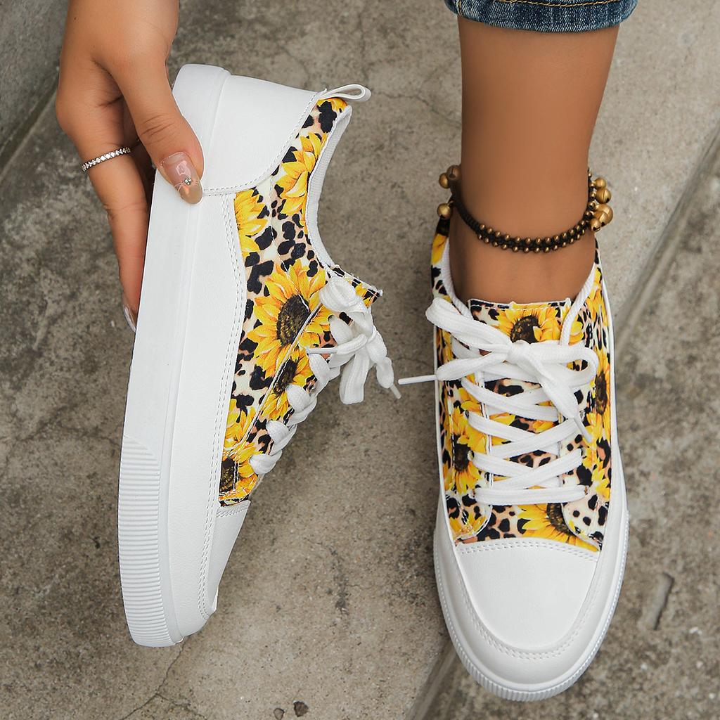 Women Sneakers Sunflower Pattern Lace Up Flat Sneakers Women Casual Breathable Canvas Shoes for Women Zapatos De Mujer