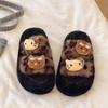 Leopard print thick bottom one-word fluffy slippers women wear 2025 new spring, autumn and winter indoor home Internet celebrity cotton slippers
