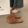 Retro flat-bottomed woven cool slippers for women's summer wear 2025 new bohemian seaside vacation beach one-word drag