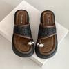 Toe slippers women's outer wear 2025 summer new retro fashion small thick heel French cool slippers