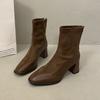 French cowhide thin boots high heel short boots women's autumn and winter new square head temperament Martin boots slim elastic boots