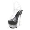 Fashion Transparent Sandals Women Crystal Heel Waterproof Platform High Heels Word Thick-heeled 17CM Car Model Shoes Slippers Women