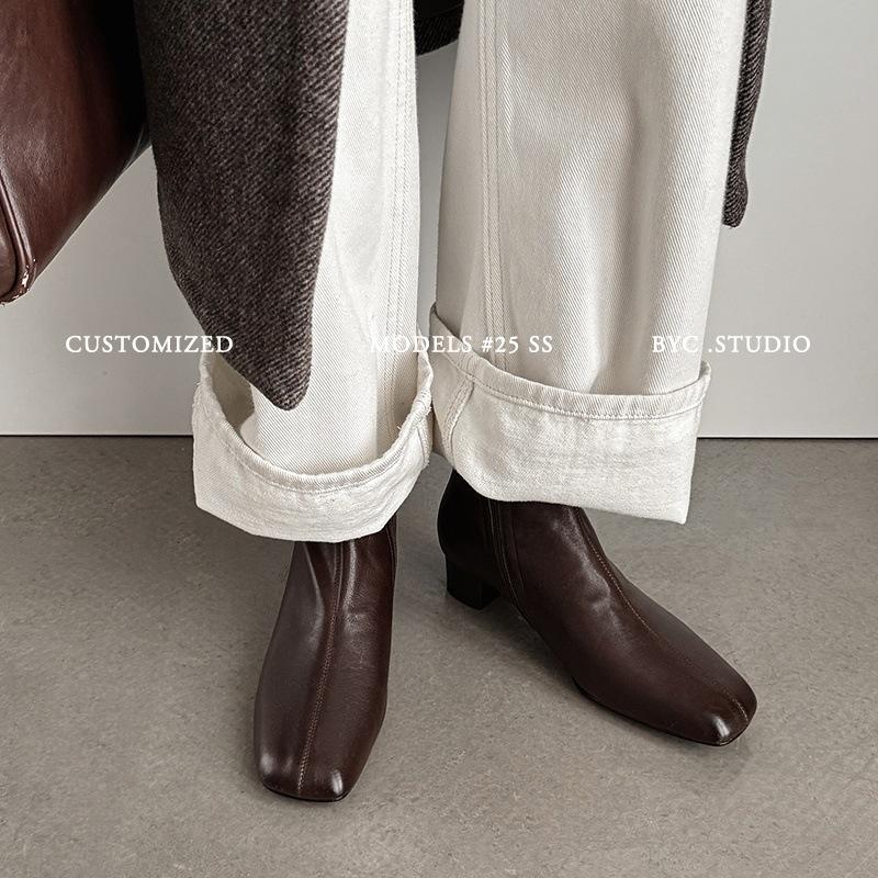 Winter thin boots women's 2025 new square head thick heel suede short boots versatile high heel Internet celebrity thin bare boots