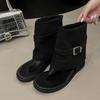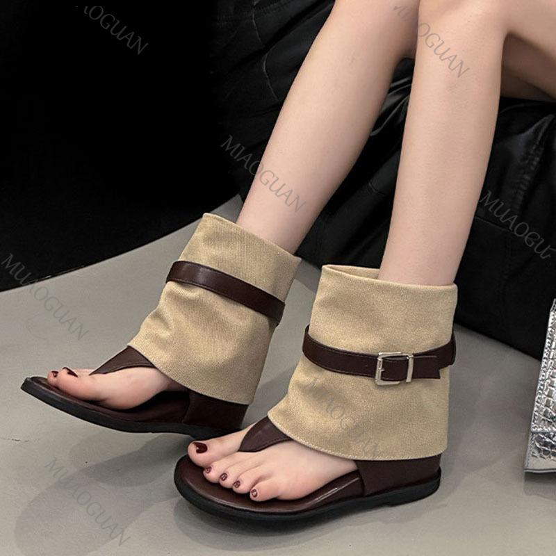 Fashion Retro Sandals Boots Women Summer Shoes Belt Buckle Flip-flops Versatile Wedge Heel Short Cool Boots Open-toe Flat Sandal Female