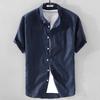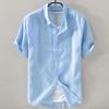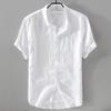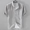Men's White Cotton Linen Short-Sleeve Shirt - Casual Summer Wear