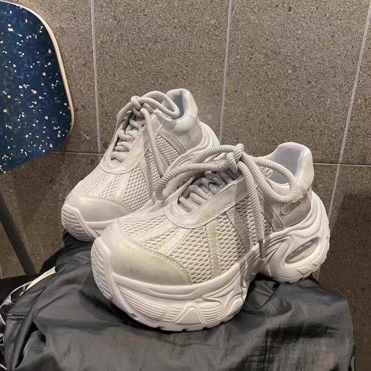 Mesh breathable thick sole heightening leather air cushion dad shoes women's retro polishing 2025 spring new sports and leisure shoes