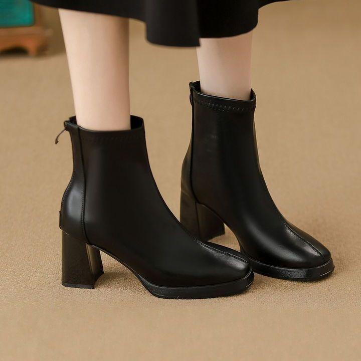 White high-heeled thin boots women's autumn 2025 new waterproof table French short boots square head small Martin boots
