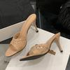 Fashion SUOJIALUN 2025 Summer New Brand Women Slipper Fashion Open Toe Slip On Slides Ladies Elegant Thin High Heel Dress Pumps Slides