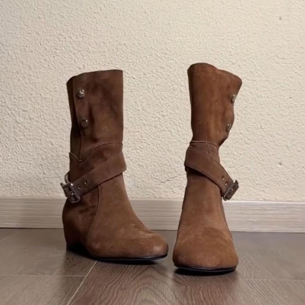 Fashion versatile Martin boots niche fashionable western boots women's belt buckle two wear matte pile boots heightening short boots women