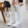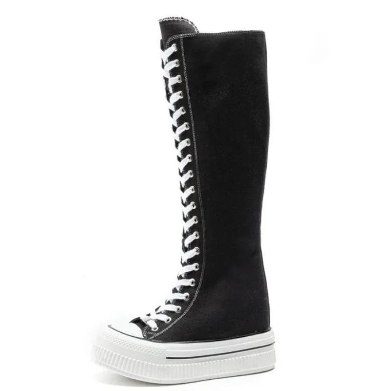 Móda 13cm Dámské vysoké plátěné boty pro volný čas Jaro Podzim Kozačky ke kolenům Šněrovací Zip Dámské platformové klínky Vulkanizované tenisky