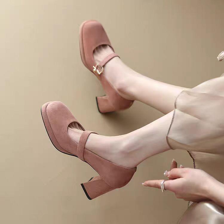 Móda Nové Mary Jane Dámské Francouzské Vintage Čtvercová špička Blokový podpatek Nazouvací Jednoduché