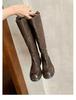 Grape mother of the same style, washed horse leather, high tube and thin medium and long boots, thick heel and thick sole leather knight boots for