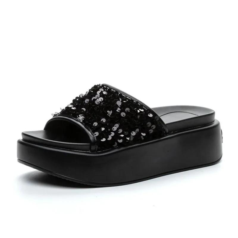 Fashion 7CM Microfiber Leather Chunky Sneaker Fashion Summer Peep Toe Hollow Pumps Hook Flats Shoes Bling High Brand Comfy Sandals Women