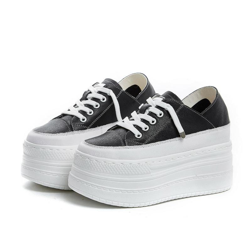 Fashion 9CM Genuine Leather Women Spring Summer Shoes Platform Sneakers Wedge High Heel Women Casual Shoes Fashion Sneakers Slippers
